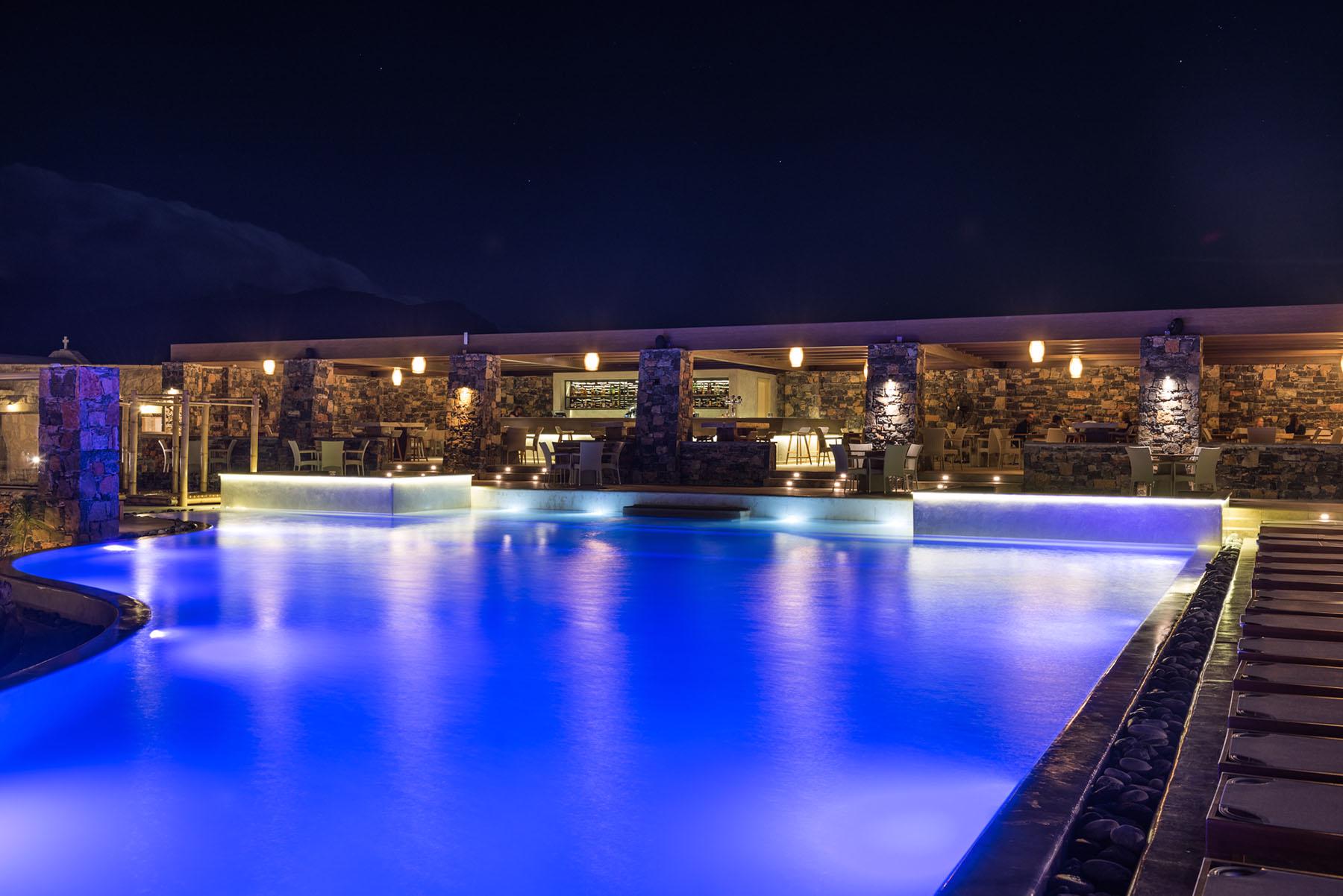 Μία δροσερή όαση, πλάι στις κεντρικές πισίνες και μόλις λίγα βήματα από την παραλία, εκεί όπου χτυπά η καρδιά του καλοκαιριού. Στη θαλάσσια αύρα του Pool Bar οι επισκέπτες μπορούν να χαλαρώσουν κατά τη διάρκεια της ημέρας απολαμβάνοντας τον καφέ τους ή ένα δροσιστικό ποτό στους ήχους μοντέρνας καλοκαιρινής μουσικής. Τα βράδια, οι DJ μας σας προσκαλούν να διασκεδάσετε και να χορέψετε στους ρυθμούς των πιο αγαπημένων μουσικών επιτυχιών όλων των εποχών.