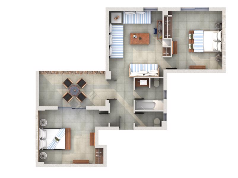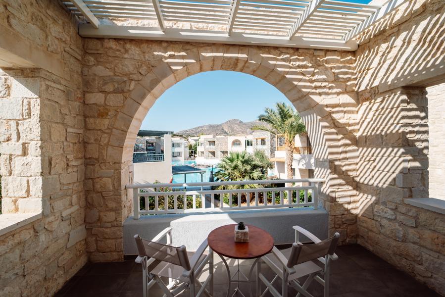 Inspiriert von der Schönheit Kretas vermittelt dieser großzügige Wohnraum, in dem natürliche Elemente und Moderne in perfekter Harmonie aufeinandertreffen, ein Gefühl von unvergleichlichem Komfort. Die Familiensuiten befinden sich im 1. Stock und sind zwischen 70 und 75 m² groß. Sie verfügen über zwei Schlafzimmer mit Einzel- oder Kingsize-Betten, einen Sitzbereich mit Schlafsofas, ein modernes Badezimmer mit ebenerdiger Duschkabine und/oder Badewanne sowie einen privaten Balkon mit Blick auf den Garten oder den Pool.